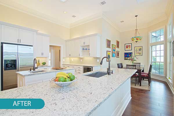 According to Forbes.com, the average American spends a little over 2 hours each day preparing meals. That average, however, increases once you’ve experienced a Refined Renovation. Why? It’s simple; once I have completely transformed and refined your space, you’ll never want to leave it. My team will remove the old flooring, cabinetry, lighting fixtures and make any necessary structural changes to open the kitchen. Next, we’ll reconfigure its design to ensure it’s more functional and aesthetically pleasing. Every detail, from the backsplash to the ceiling texture to appliances, is carefully chosen to create the perfect balance between function and design.